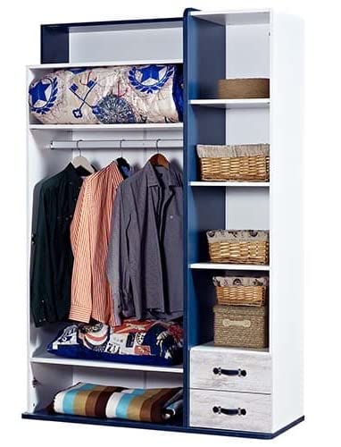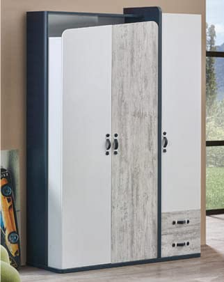 Dafne Italian Design TUTTOCAMERETTE.IT - Cameretta completa per ragazzi stile contemporaneo bianco, grigio chiaro e blu. Comprende letto, materasso, comodino, armadio, scrivania - [LVT]
