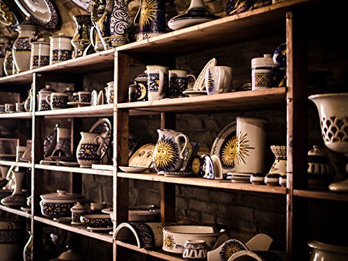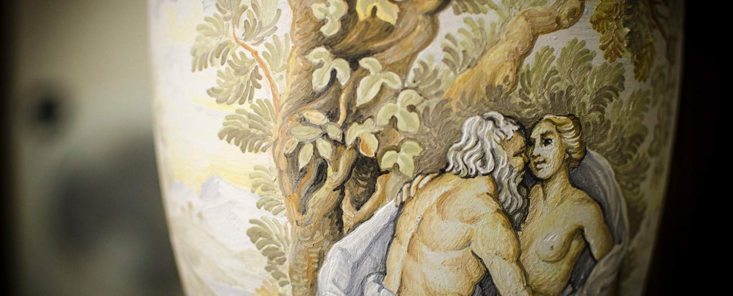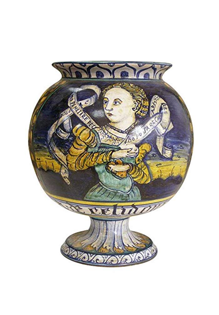 Vaso globoso con piede dipinto a mano in ceramica artistica. Fatto in Italia.