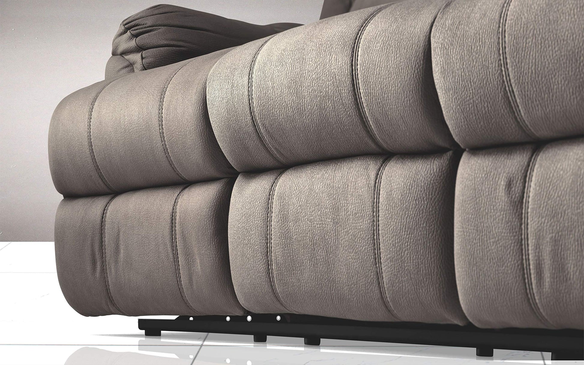 Inoltre è dotato di 2 pediere estraibili attivabili tramite meccanismo manuale posizionato sia sul lato destro che sul lato sinistro del divano.