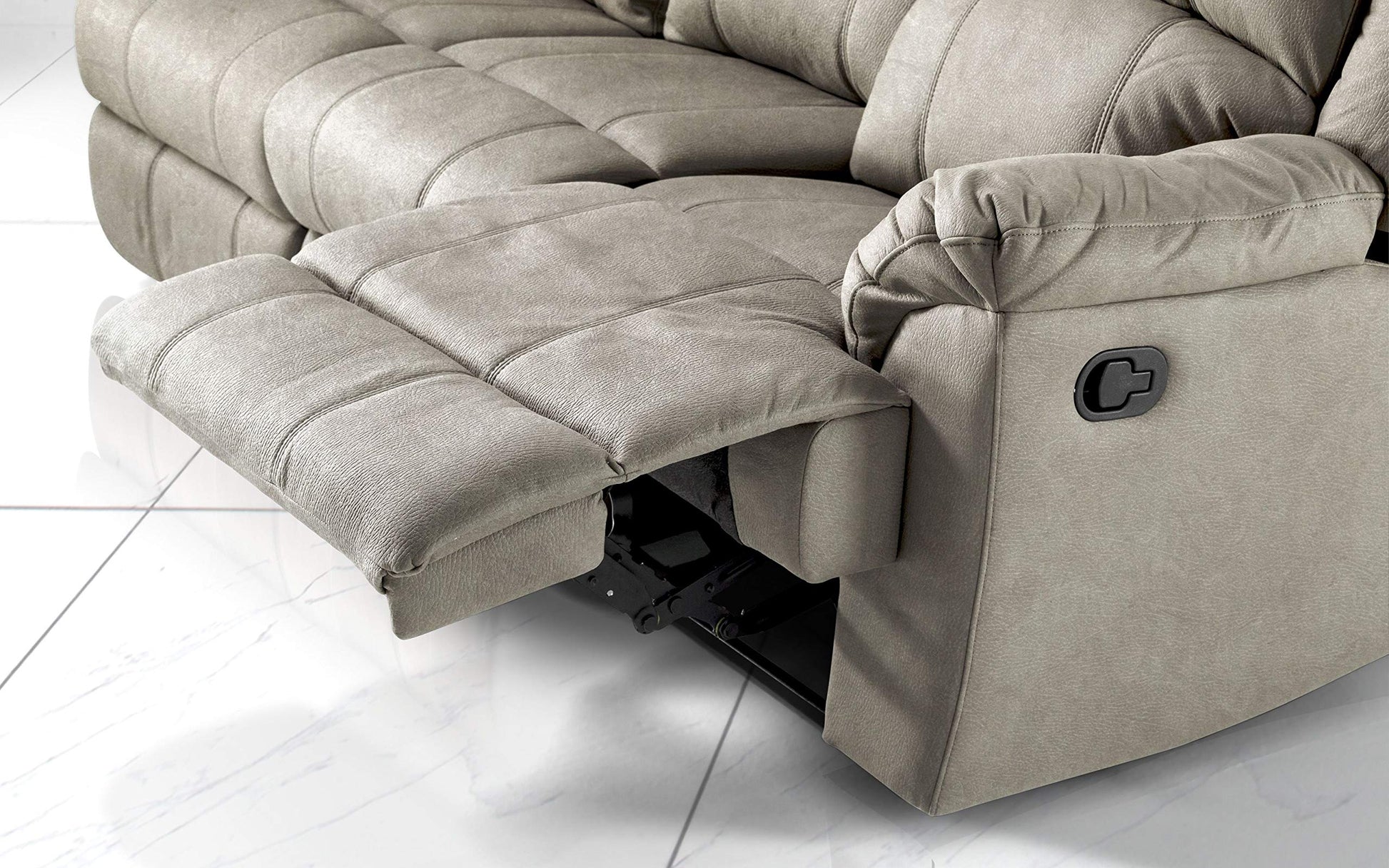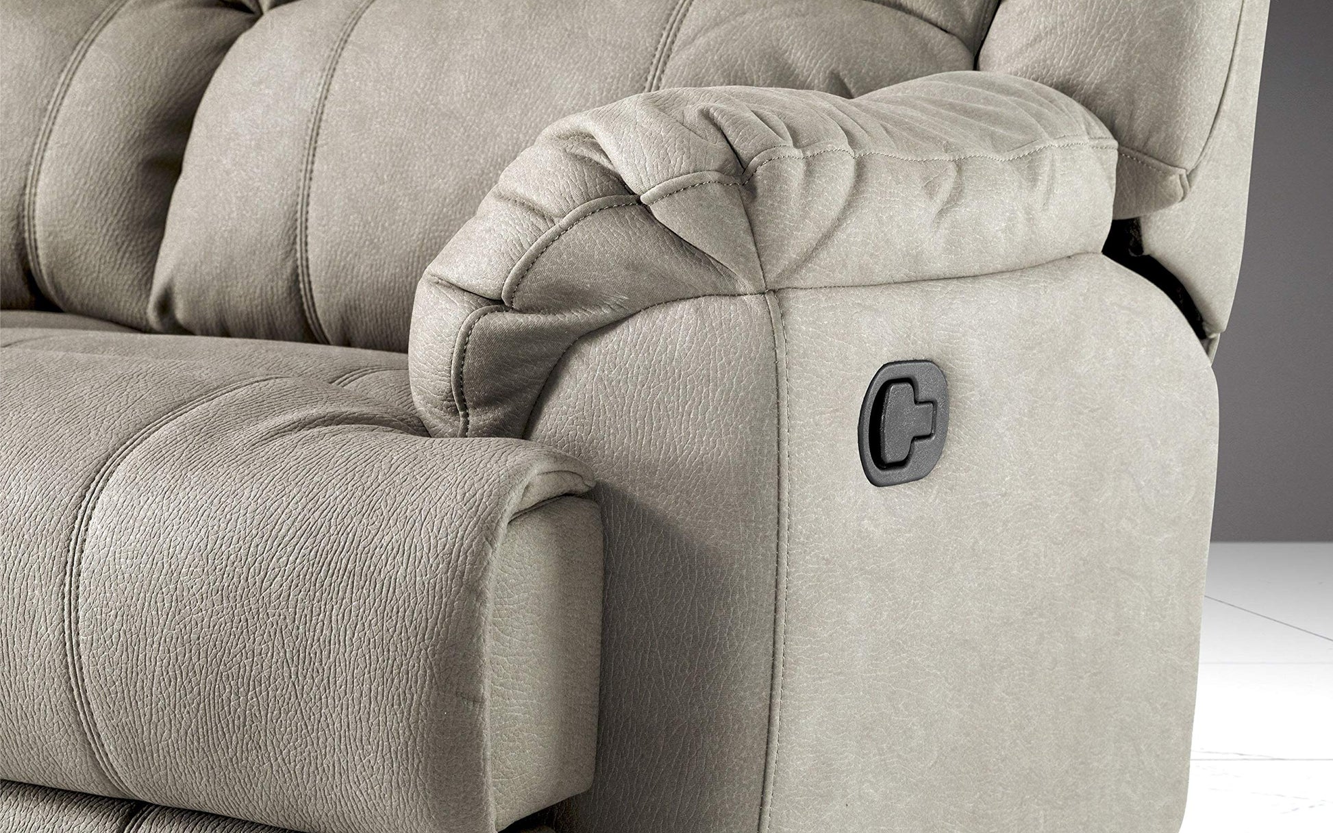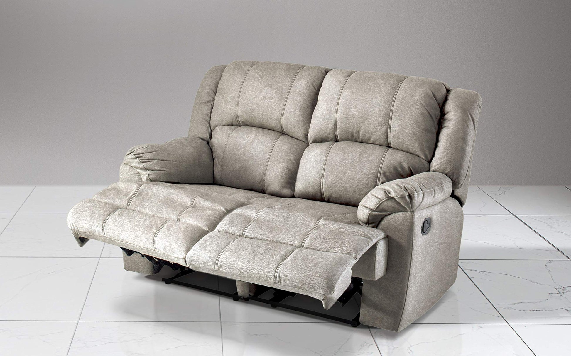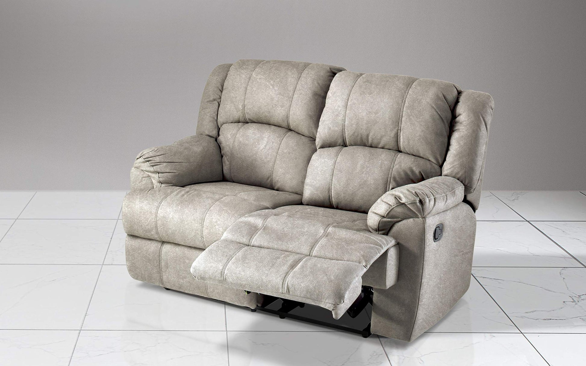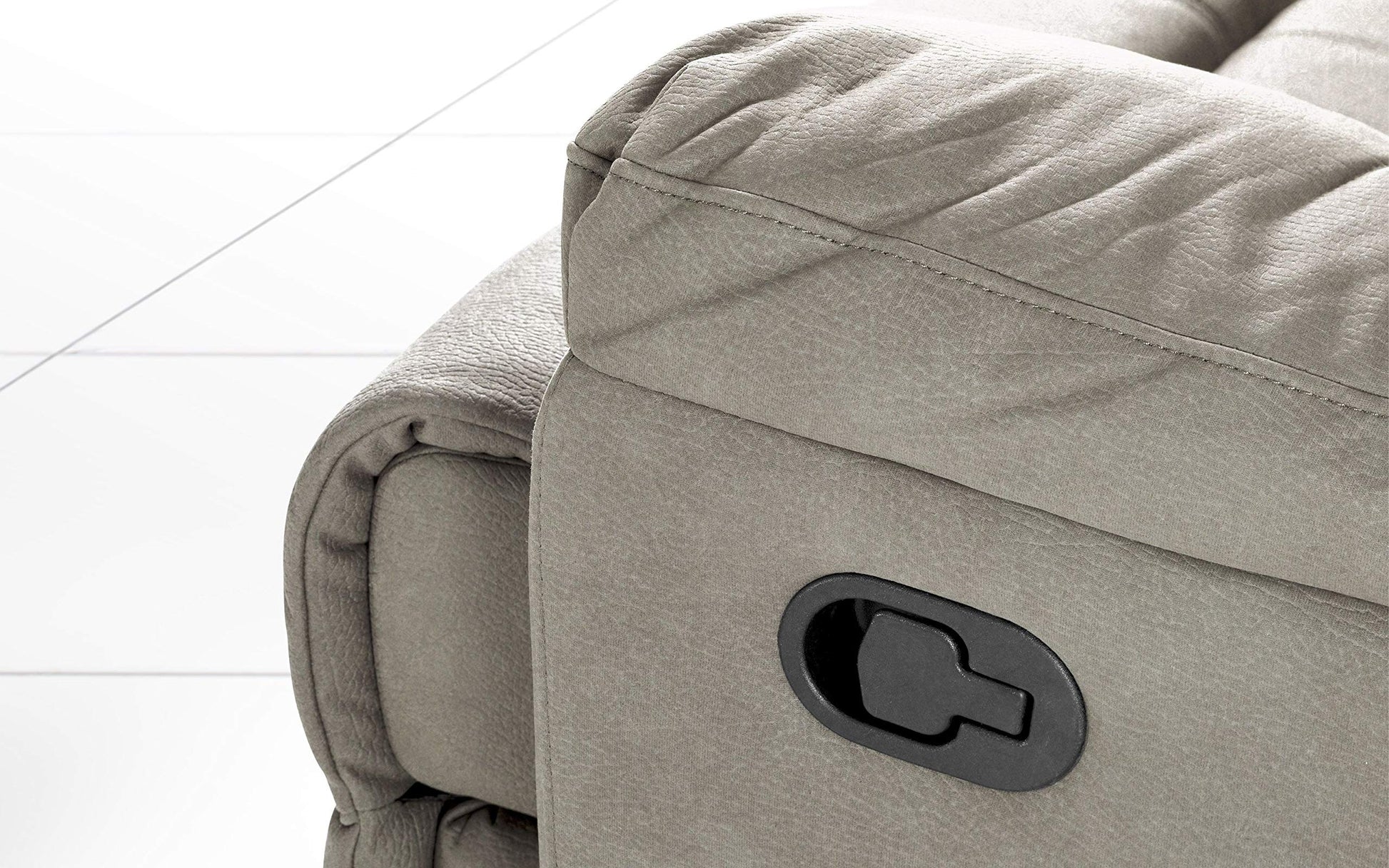 Dafne Italian Design Divano 2 posti con 2 Recliner manuali. Similpelle Effetto Nabuk Light Grey (cm. 150 x 98 x 99h)