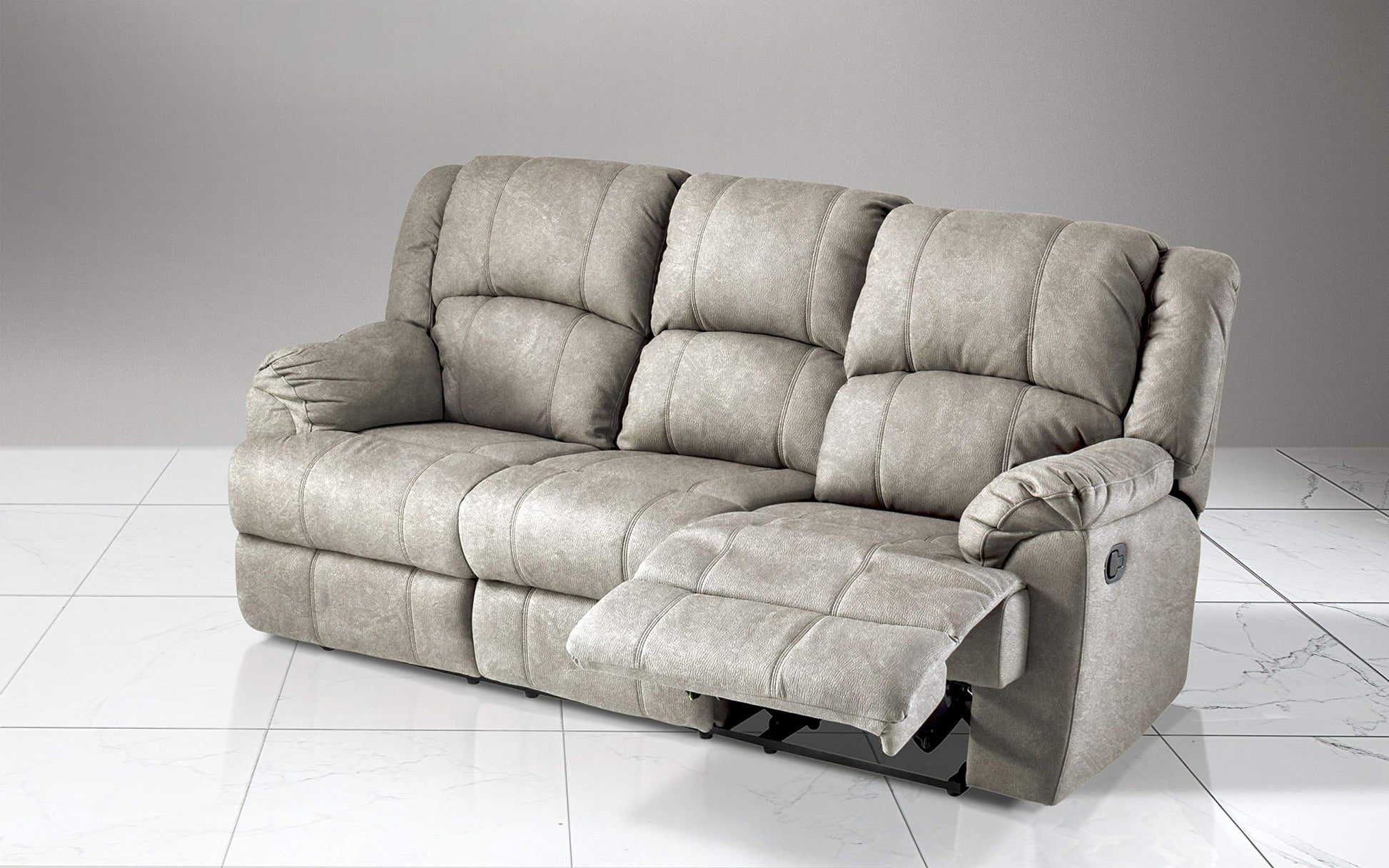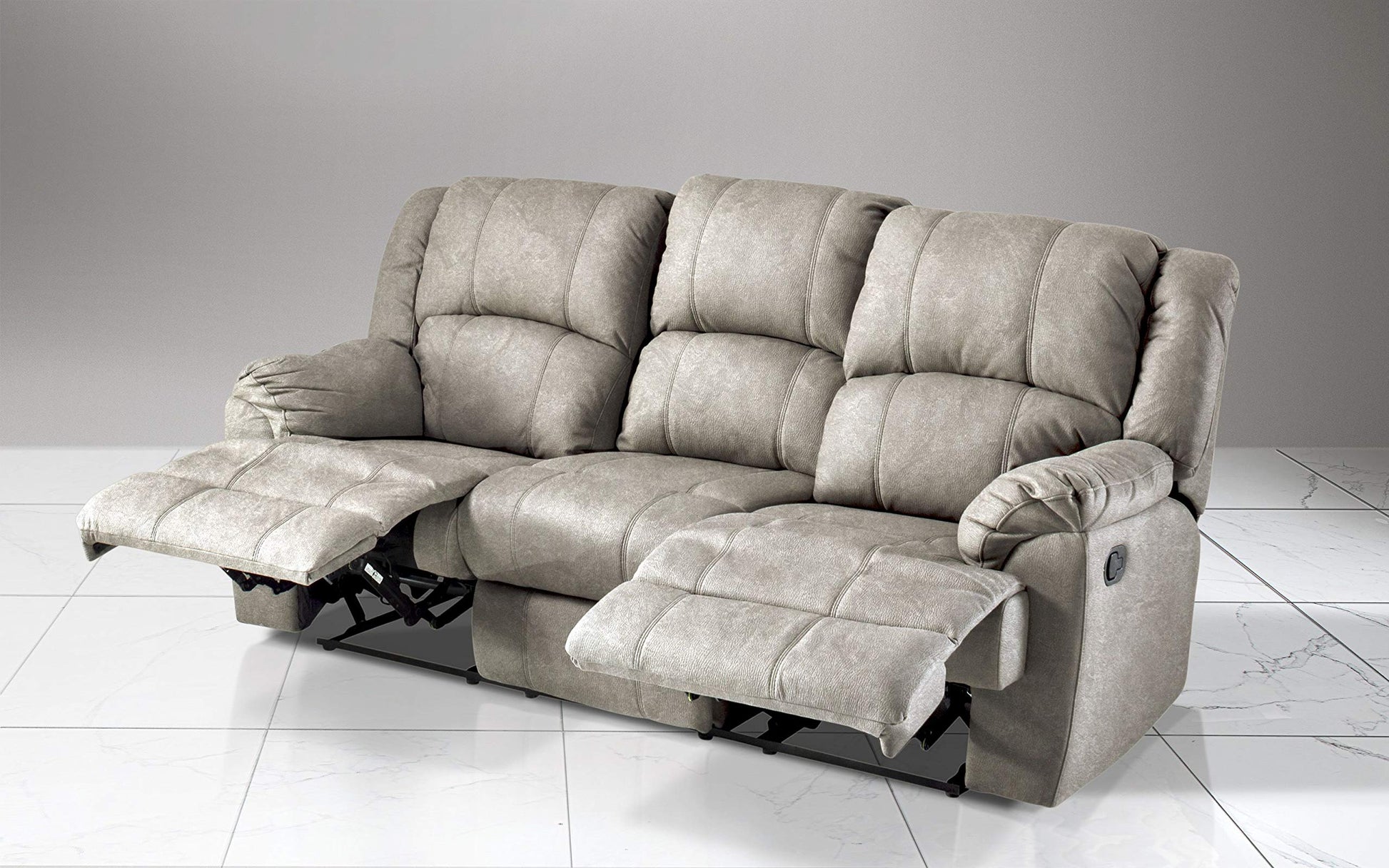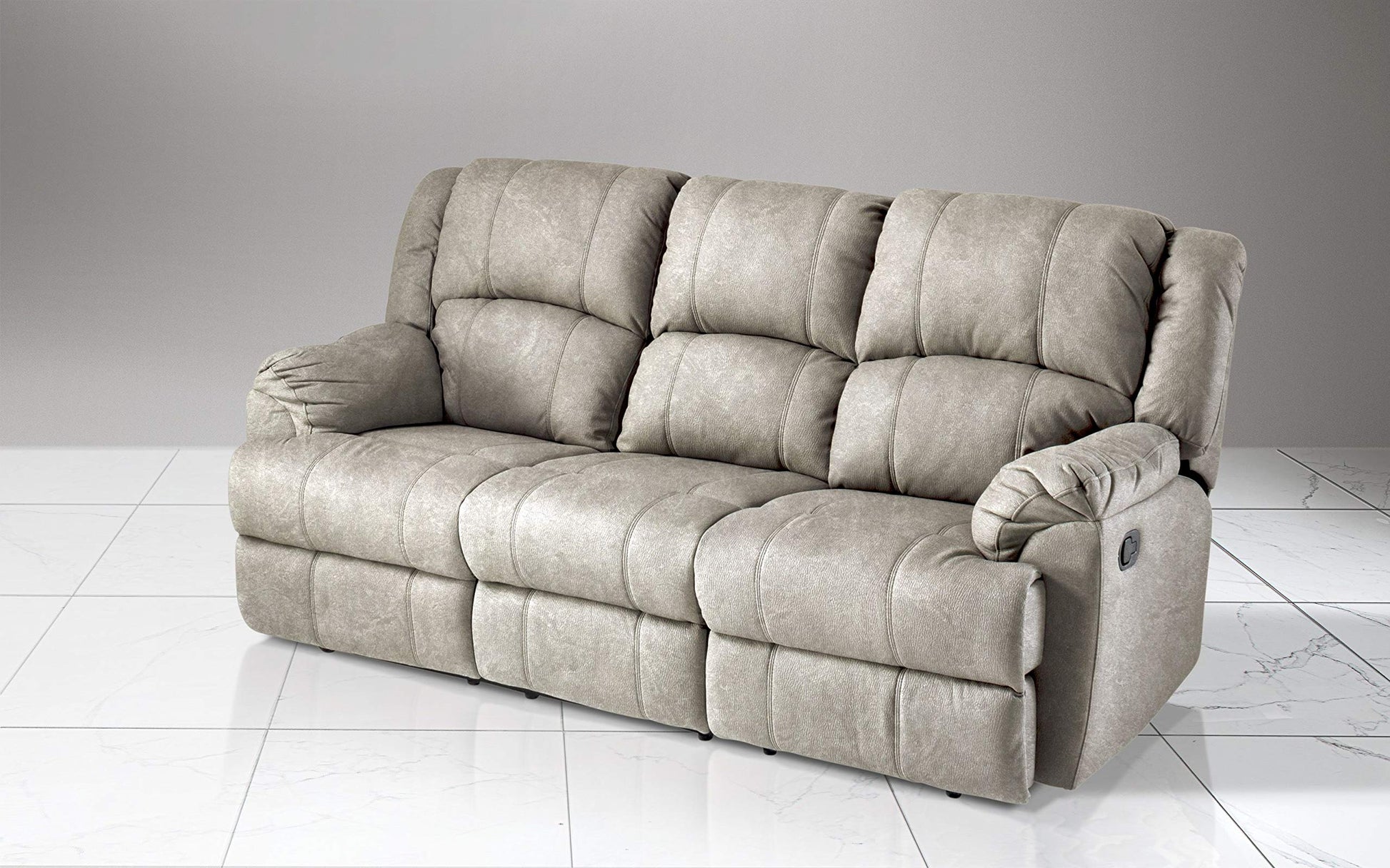 Dafne Italian Design Divano 3 posti con 2 Recliner manuali. Similpelle Effetto Nabuk Light Grey (cm. 203 x 98 x 99h)