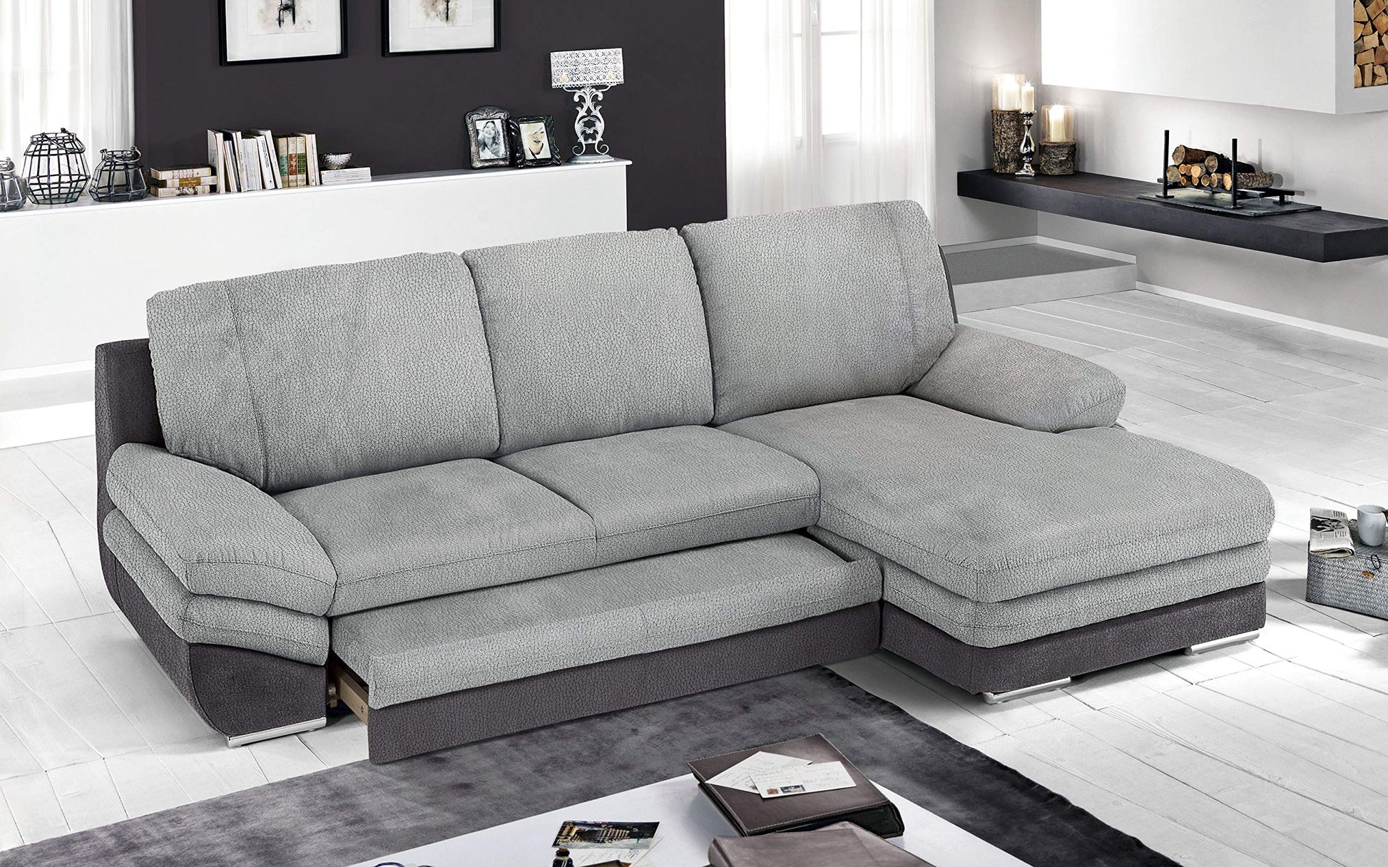 Dafne Italian Design Divano Letto angolare 2 posti con penisola a Destra. Tessuto Antracite, Silver (cm. 271 x 166 x 91h)