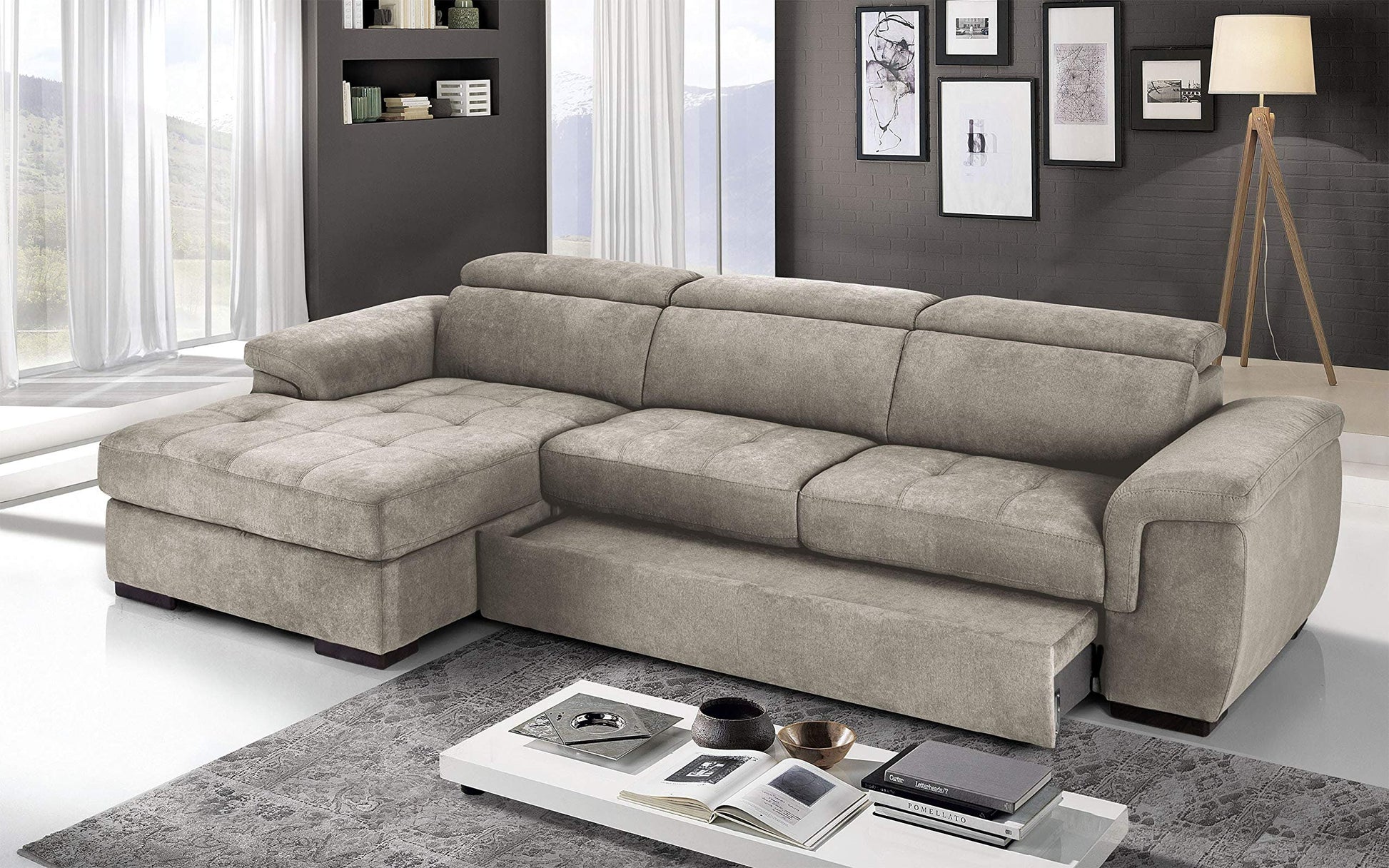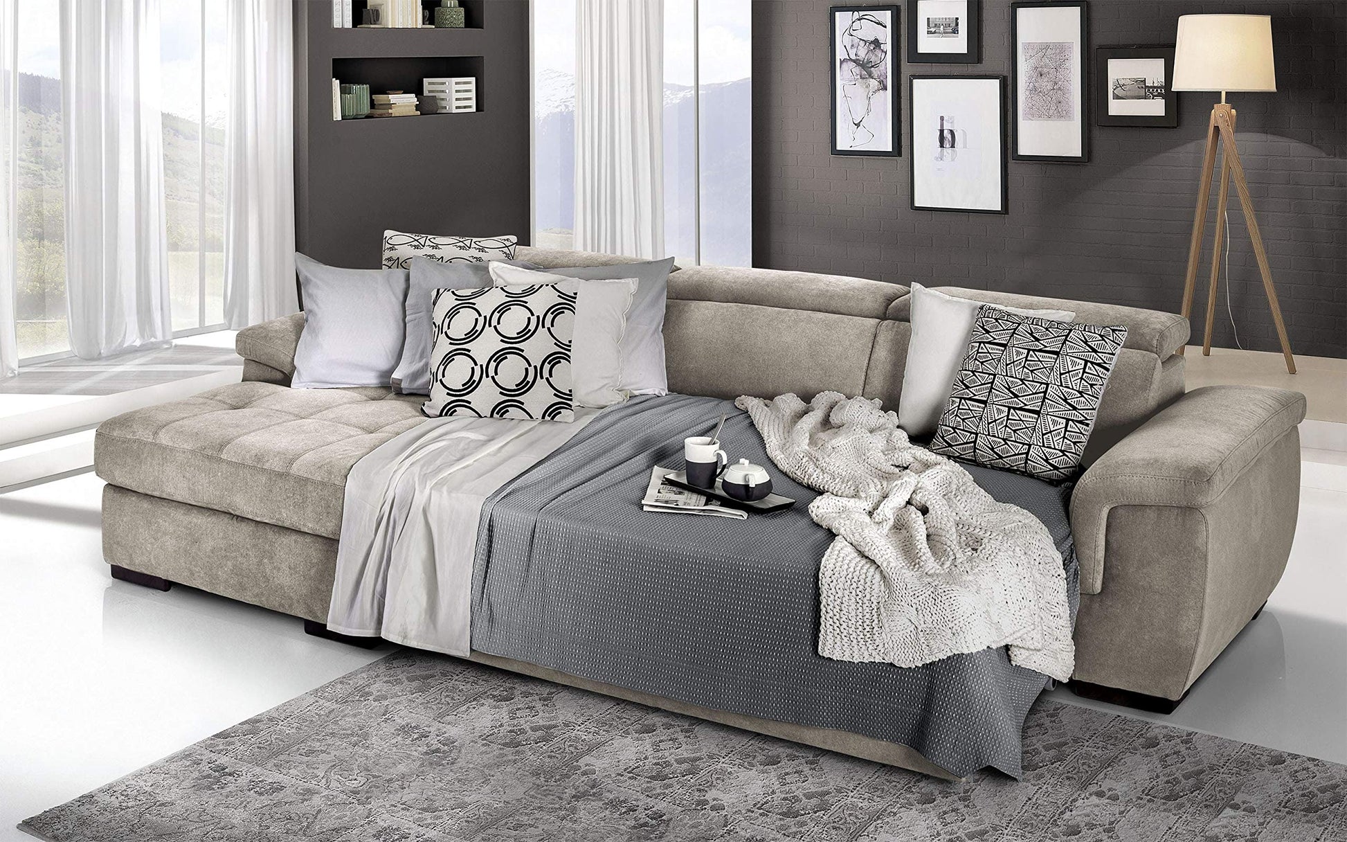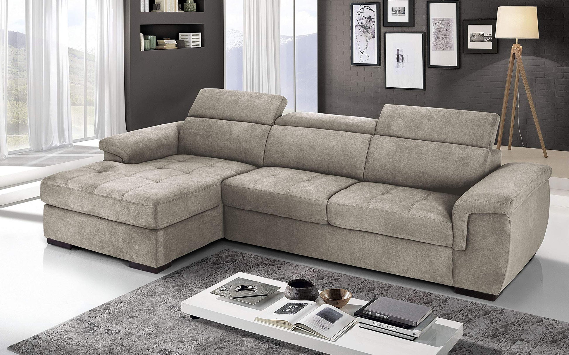 Dafne Italian Design Divano Letto angolare 3 posti con penisola a Sinistra. Tessuto Romeo Ecru (cm. 287 x 176 x 96h)