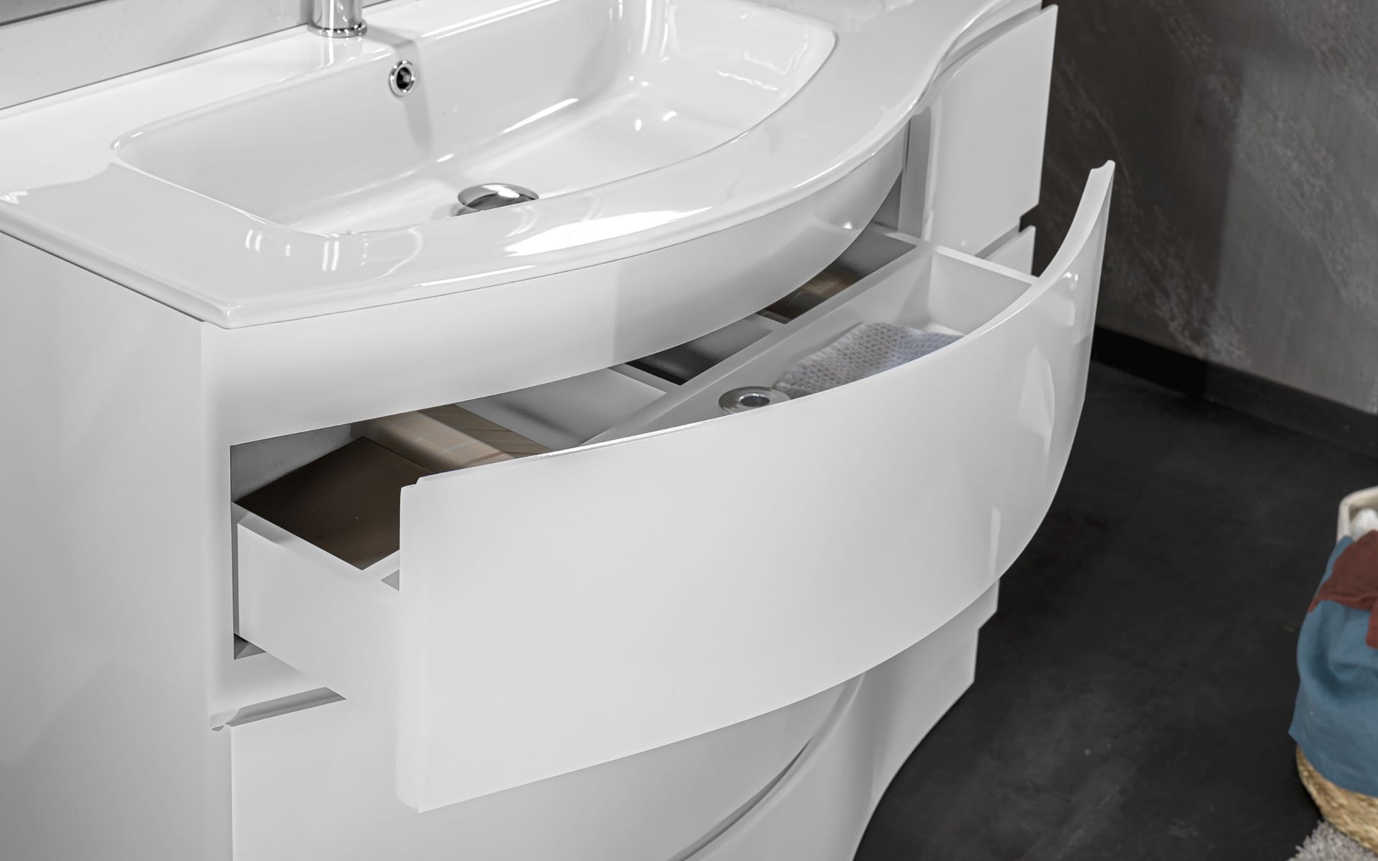 Dafne Italian Design Mobile da bagno componibile Elegance bianco laccato lucido cm. 110 x 54 x 189 (base, lavabo, specchio)