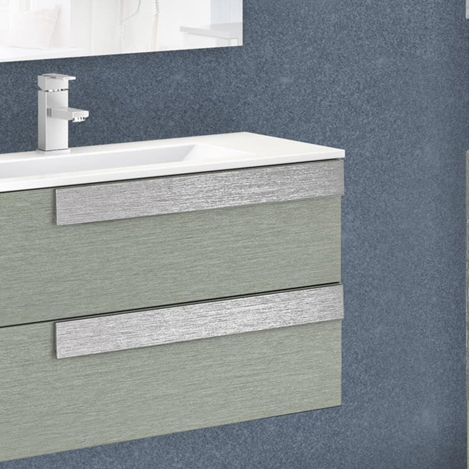 Mobile da bagno sospeso "Sandie", colore grigio chiaro e verde salvia con maniglia grigia cm. 81x46x189: 2 capienti cassettoni con chiusura ammortizzata, specchio rettangolare con led - lavabo in ceramica che abbraccia il mobile con linee sinuose ed eleganti . Per mantenere sempre in forma il mobile pulisci con un panno morbido, pulito ed inumidito in acqua oppure in un detersivo neutro. Al presentarsi di macchie di umidità le stesse, vanno asciugate immediatamente, per evitare la penetrazione dell'umidità. Proteggilo dalla luce diretta del sole, tienilo ad una distanza minima di 30 cm da ogni fonte di calore e non usare mai solventi.