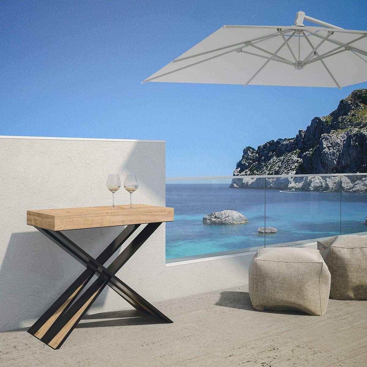 Itamoby Diago 90cm Consolle Allungabile, Pannelli di nobilitato, Abete Natura/Antracite, L.90 x P.40 x H.77