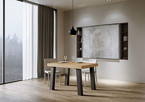 Itamoby, Tavolo allungabile Bridge 180->284 cm, Pannelli di Nobilitato, Quercia Natura & Antracite L.180 P.90 H.77 (allungabile Fino a L.284 con Due allunghe)