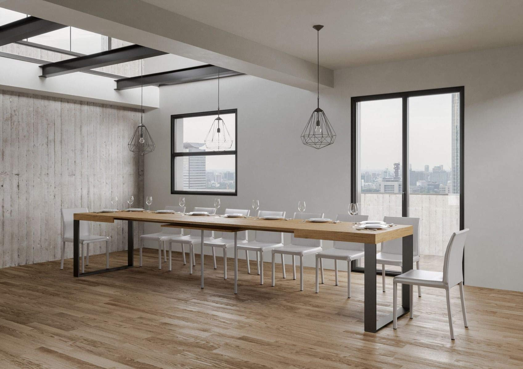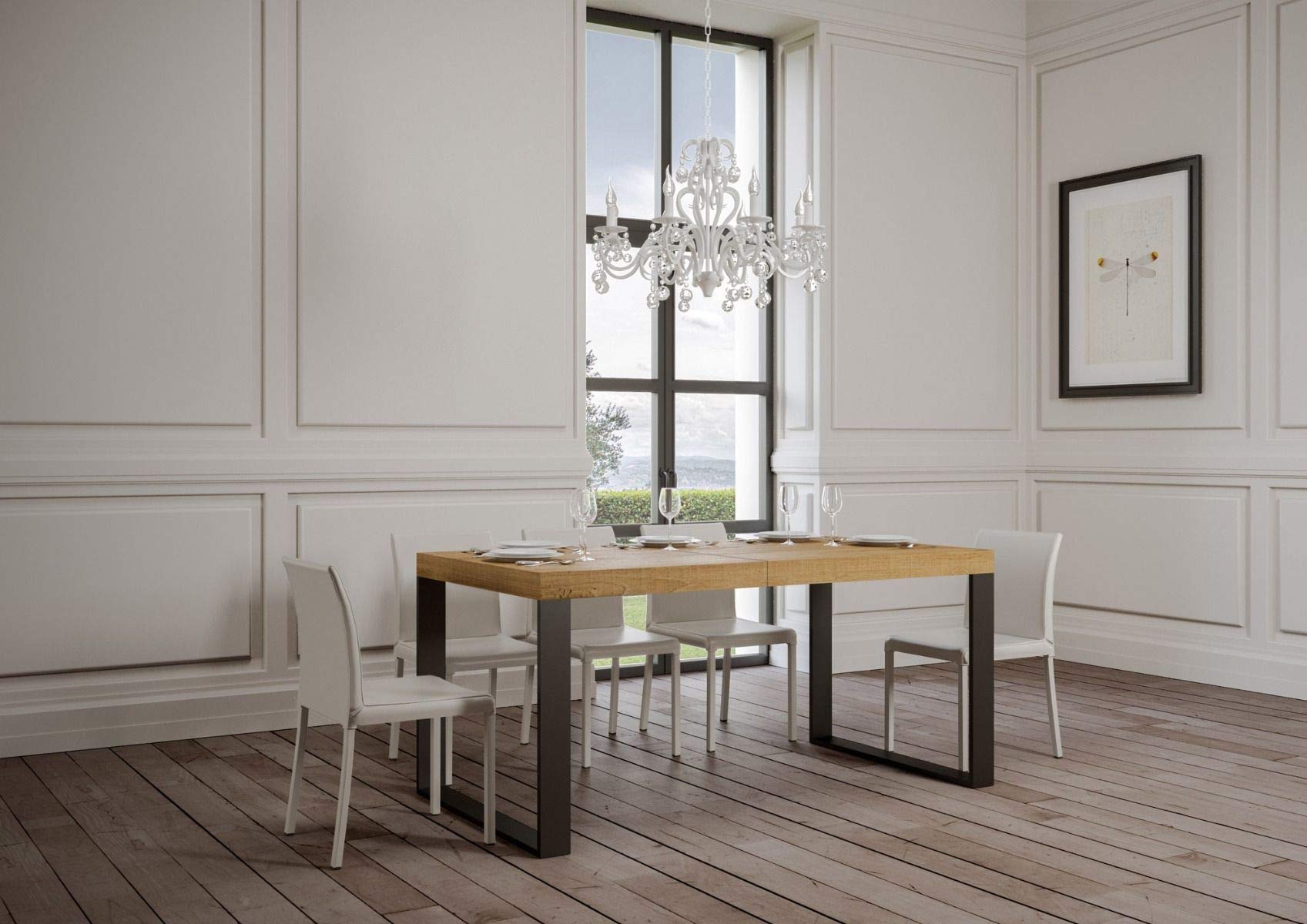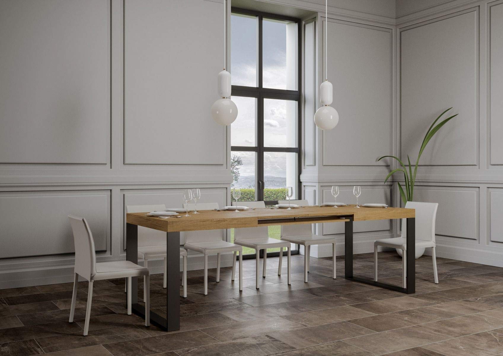 Itamoby, Tavolo allungabile Tecno 160->420 cm, Pannelli di Nobilitato, Quercia Natura & Antracite L.160 P.90 H.77 (allungabile Fino a L.420 con Cinque allunghe)