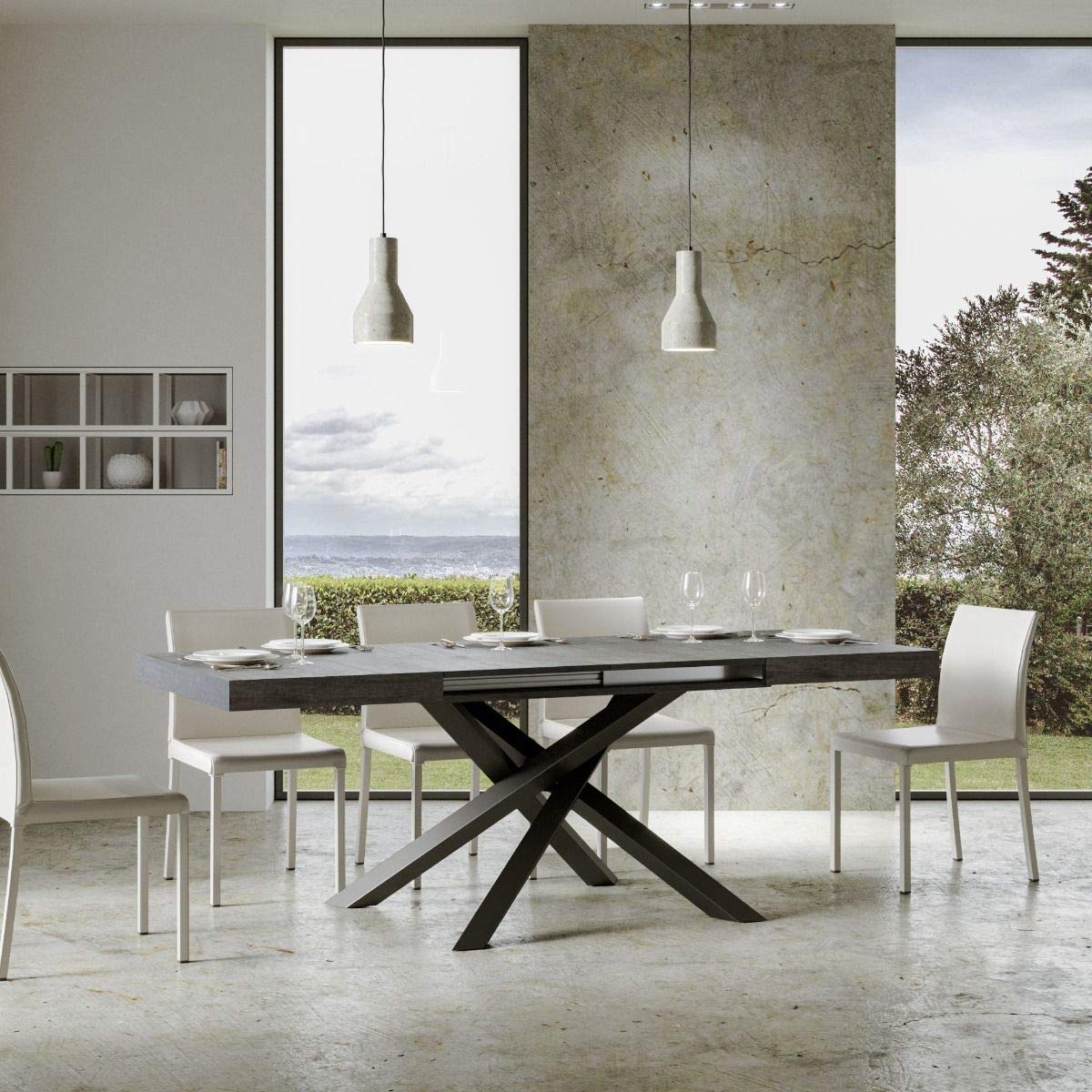 Itamoby, Tavolo allungabile Volantis 180->284 cm, Piano Cemento e Telaio Antracite L.180 P.90 H.77 (allungabile Fino a L.284 con Due allunghe)