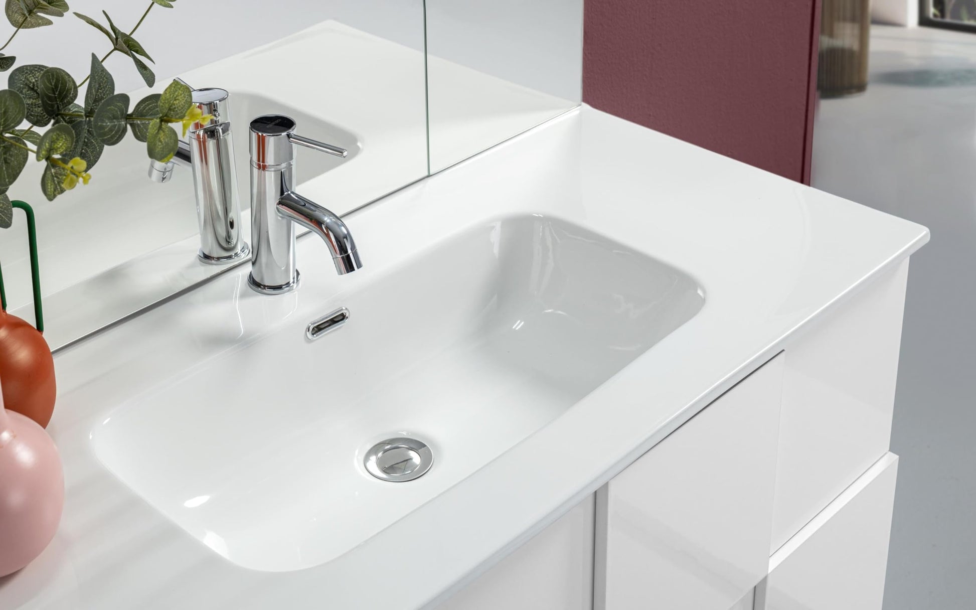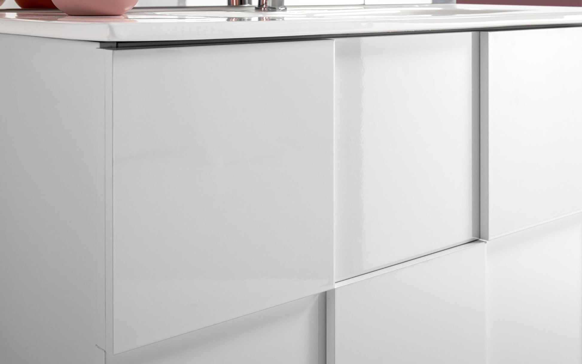 Mobile da bagno componibile "Dame" color bianco lucido cm. 100 x 45 x 85 (base, lavabo, specchio, pensile)