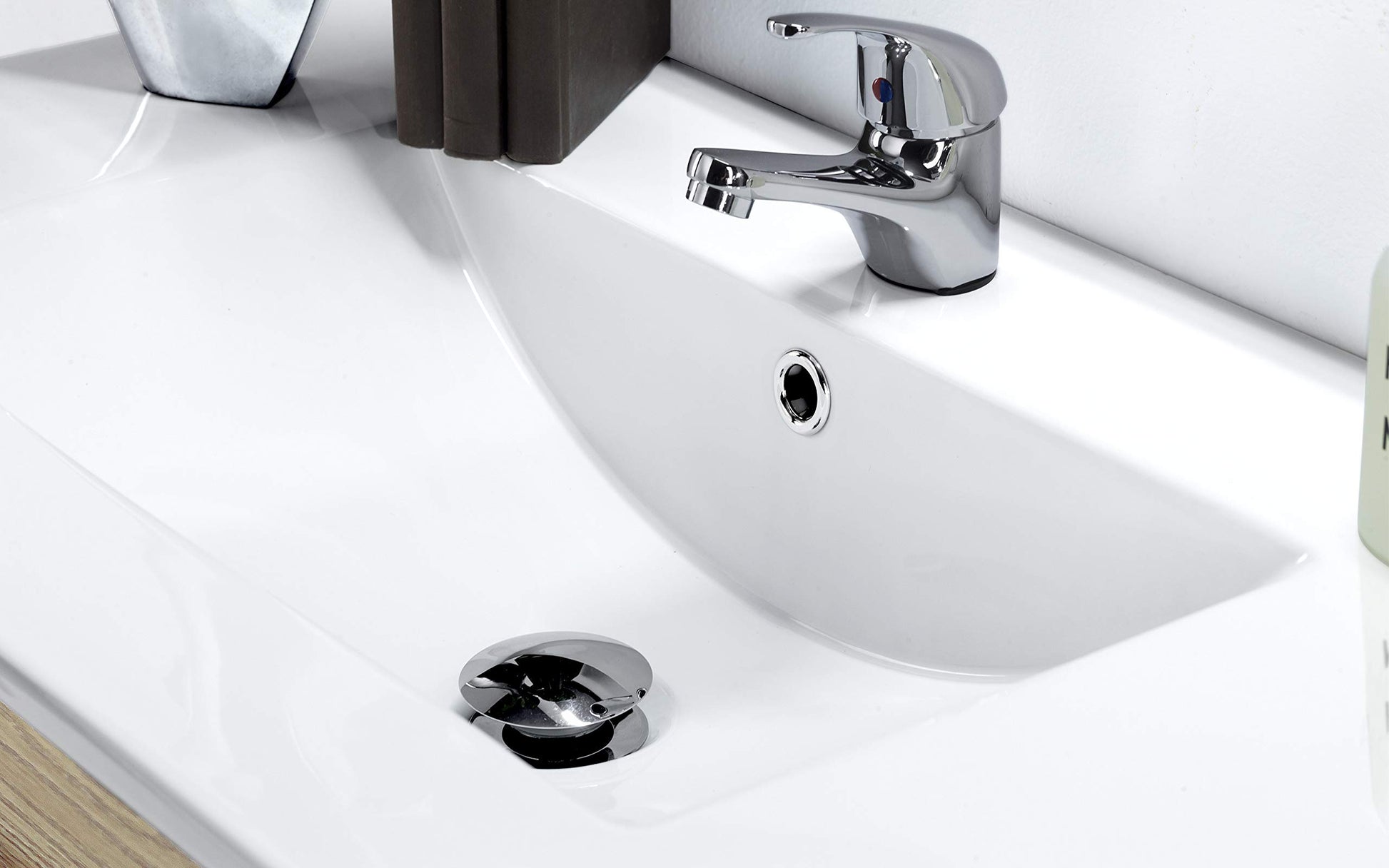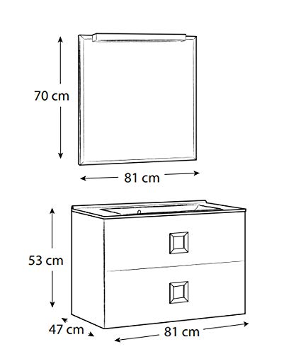 Mobile da bagno con lavabo sospeso - Componibile bagno sospeso 2 cassetti con maniglie in metallo, lavabo in ceramica e specchio con luce a Led. cm. 81 x 47 x 190h. Mobile di altissima qualit�. (STMB)